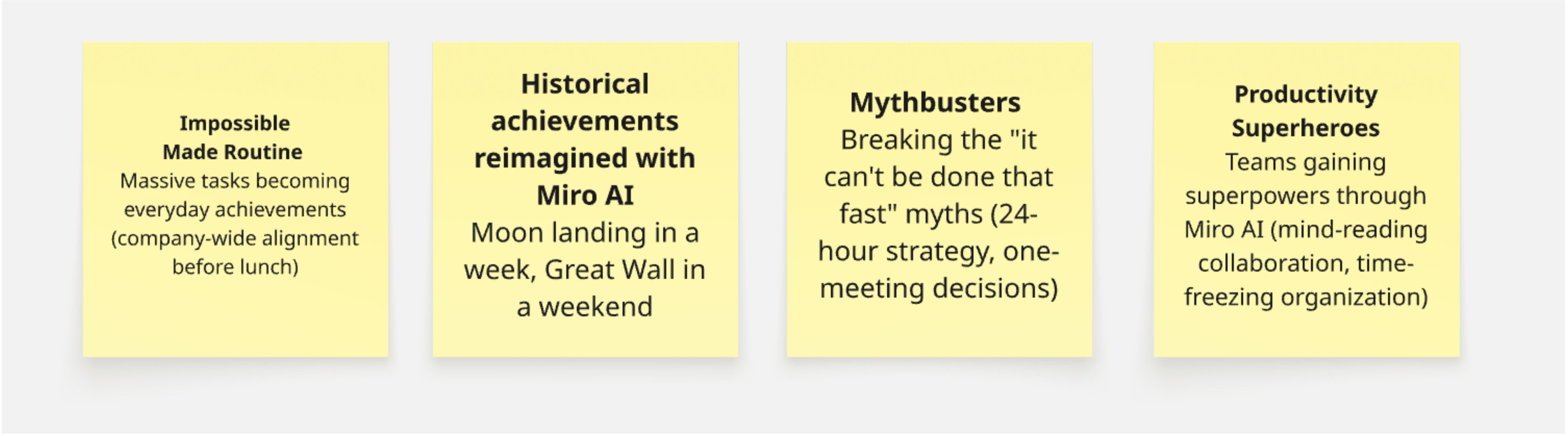 In a majorly meta moment, the creative journey began with a simple Miro AI request done by Miro’s creative team: