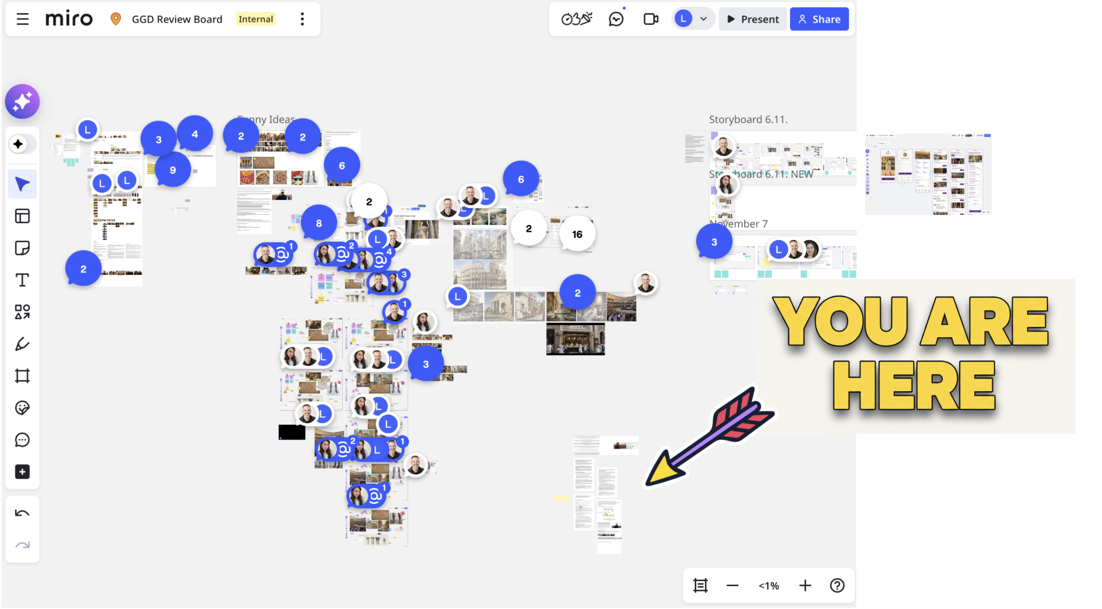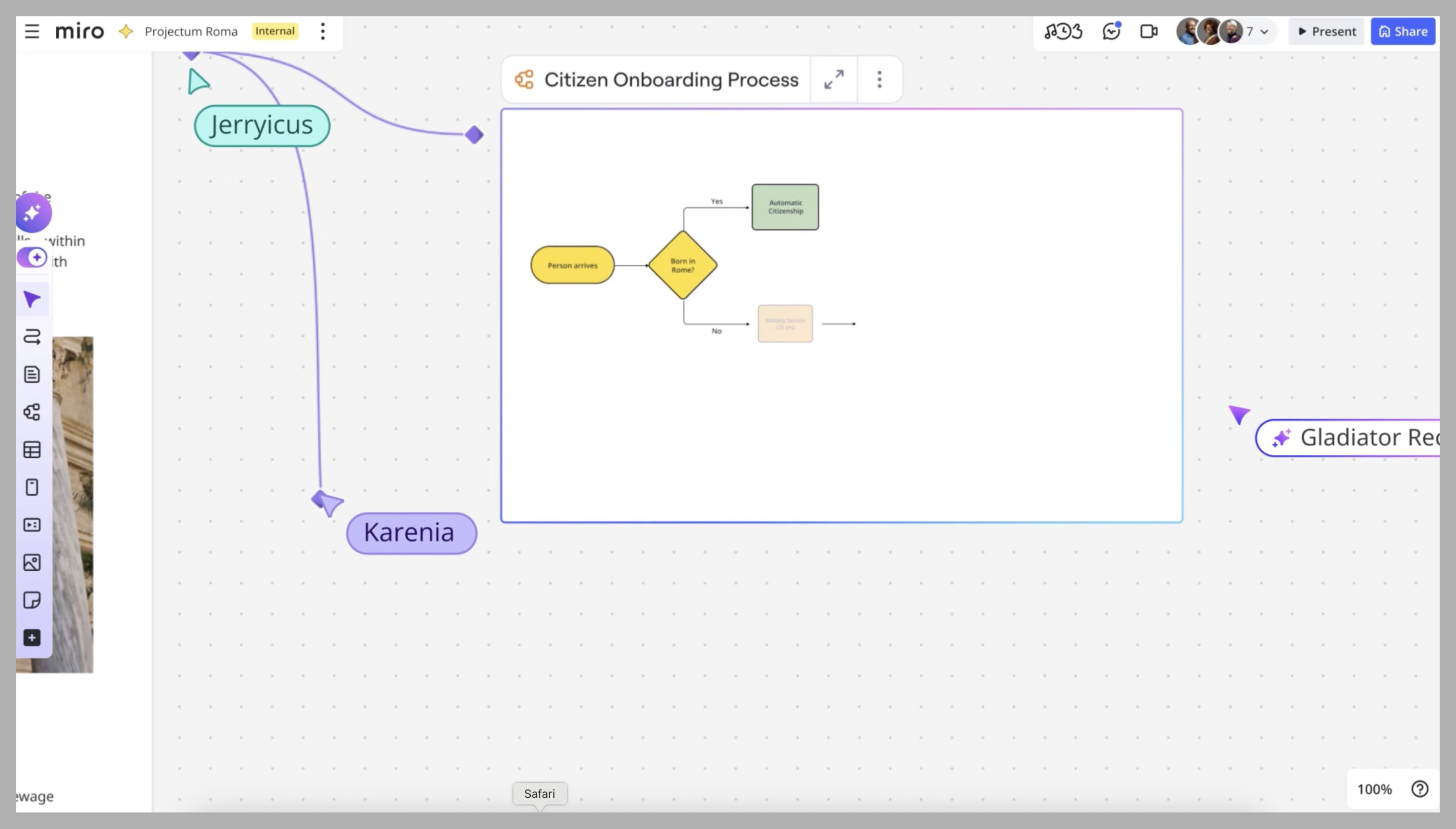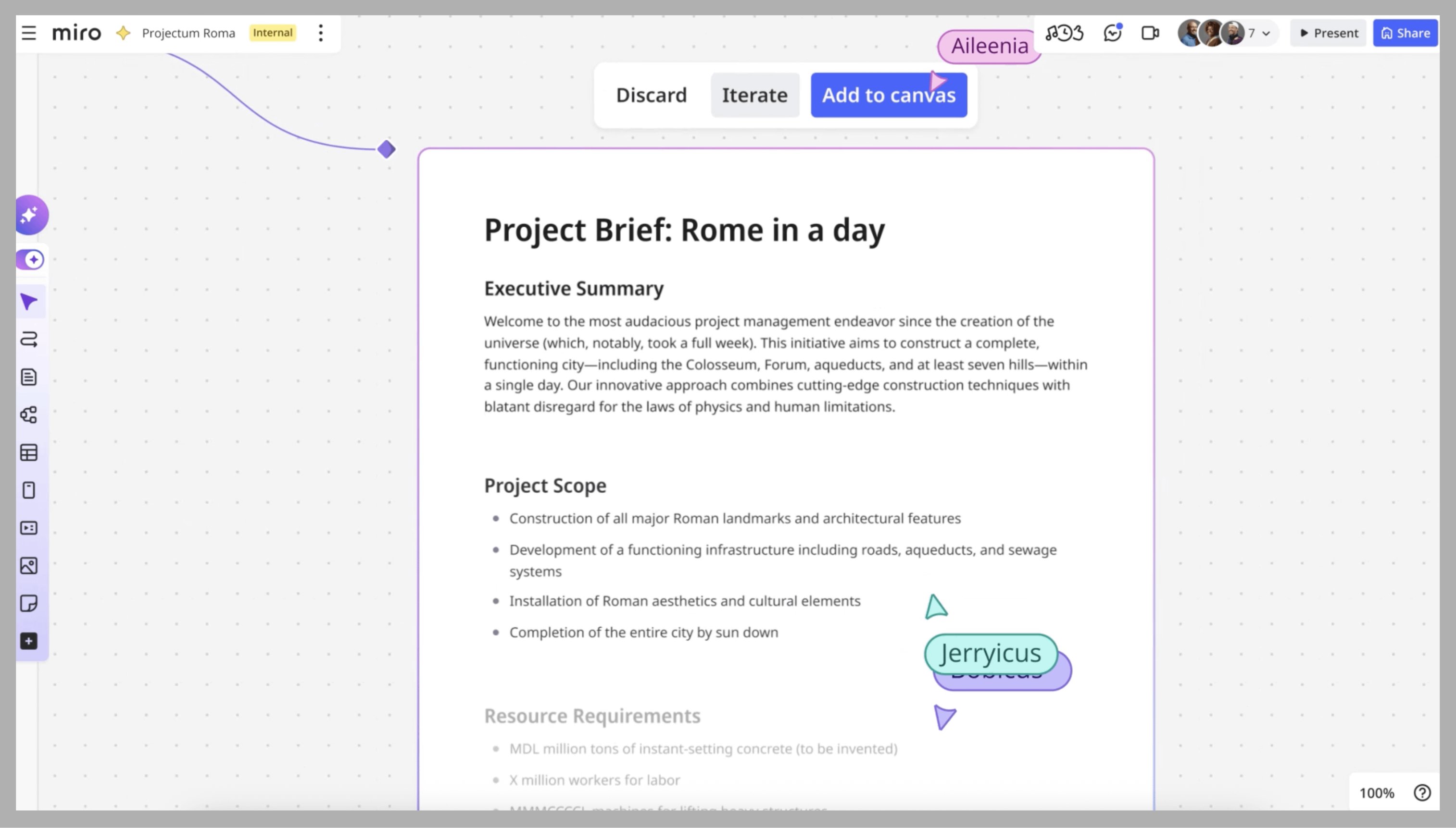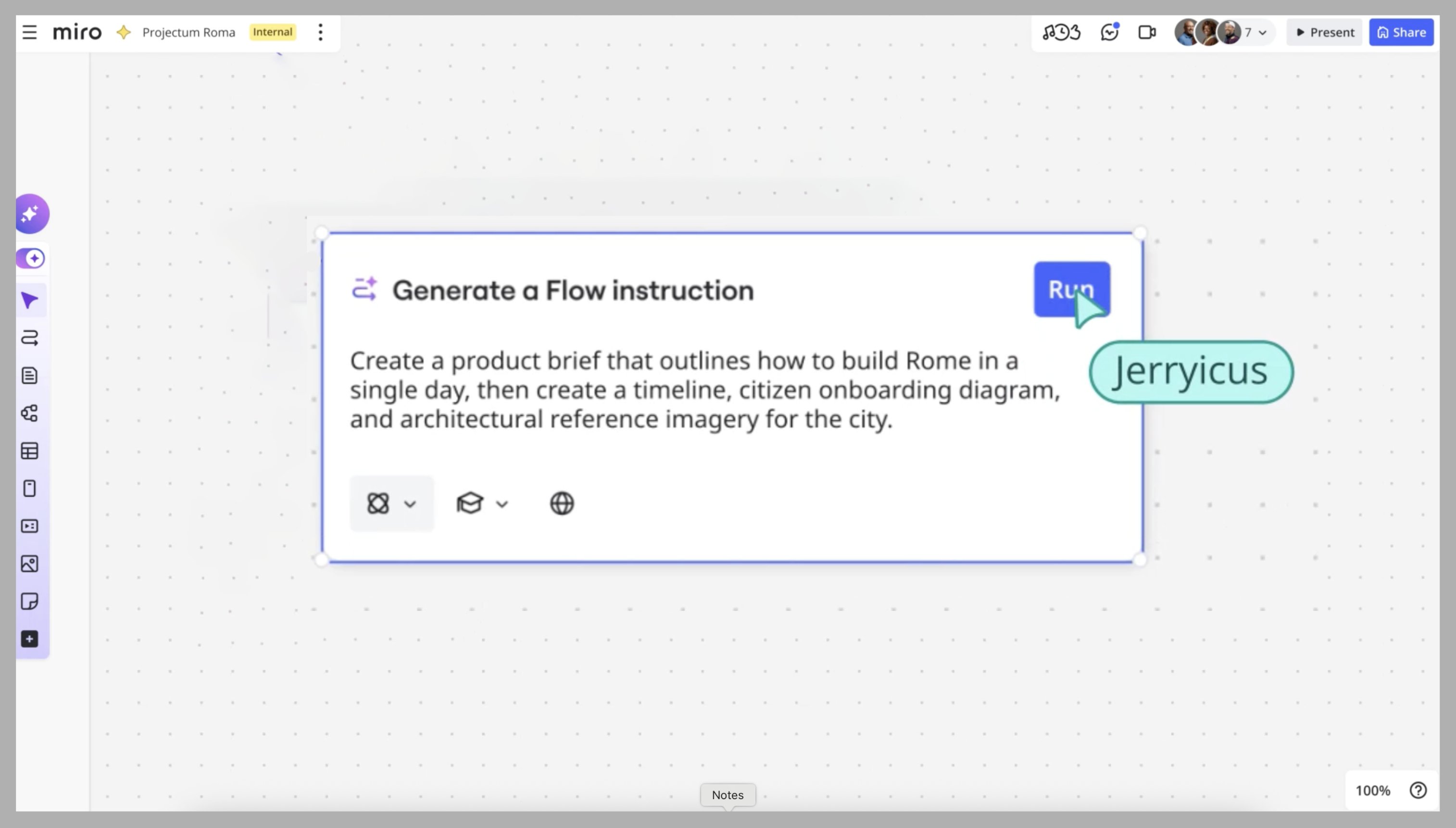 Miro played a central role not just as the subject of the story, but as the collaborative engine behind the production. The team used a Miro board to collapse the distance between creative imagination and execution. It became the single shared space where prompt became storyboard, storyboard became strategy, and strategy became “Rome.”