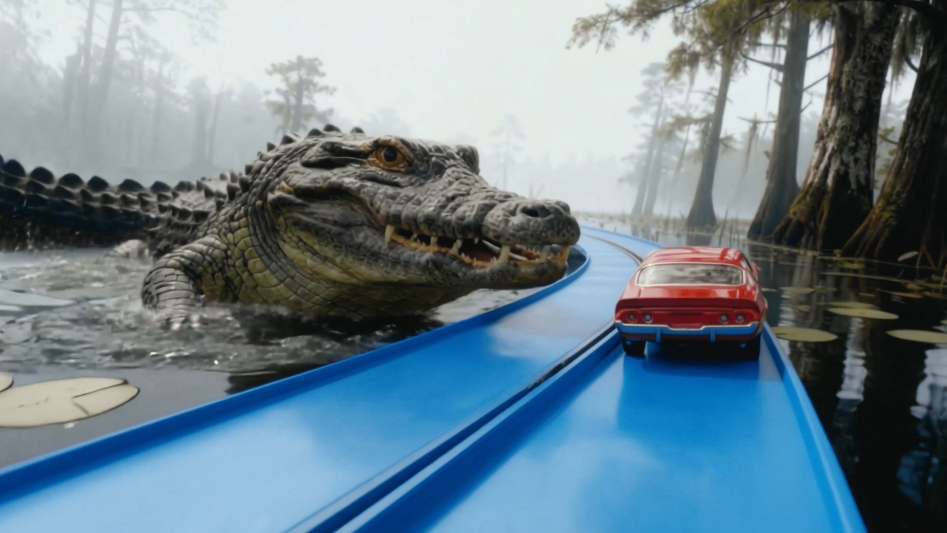 After picture lock, we used a Tool-developed AI pipeline built around proprietary 3D tracking and depth mapping. This system was engineered internally to create photorealistic environments that accurately respond to live-action plates in perspective, scale, lighting, and spatial continuity.