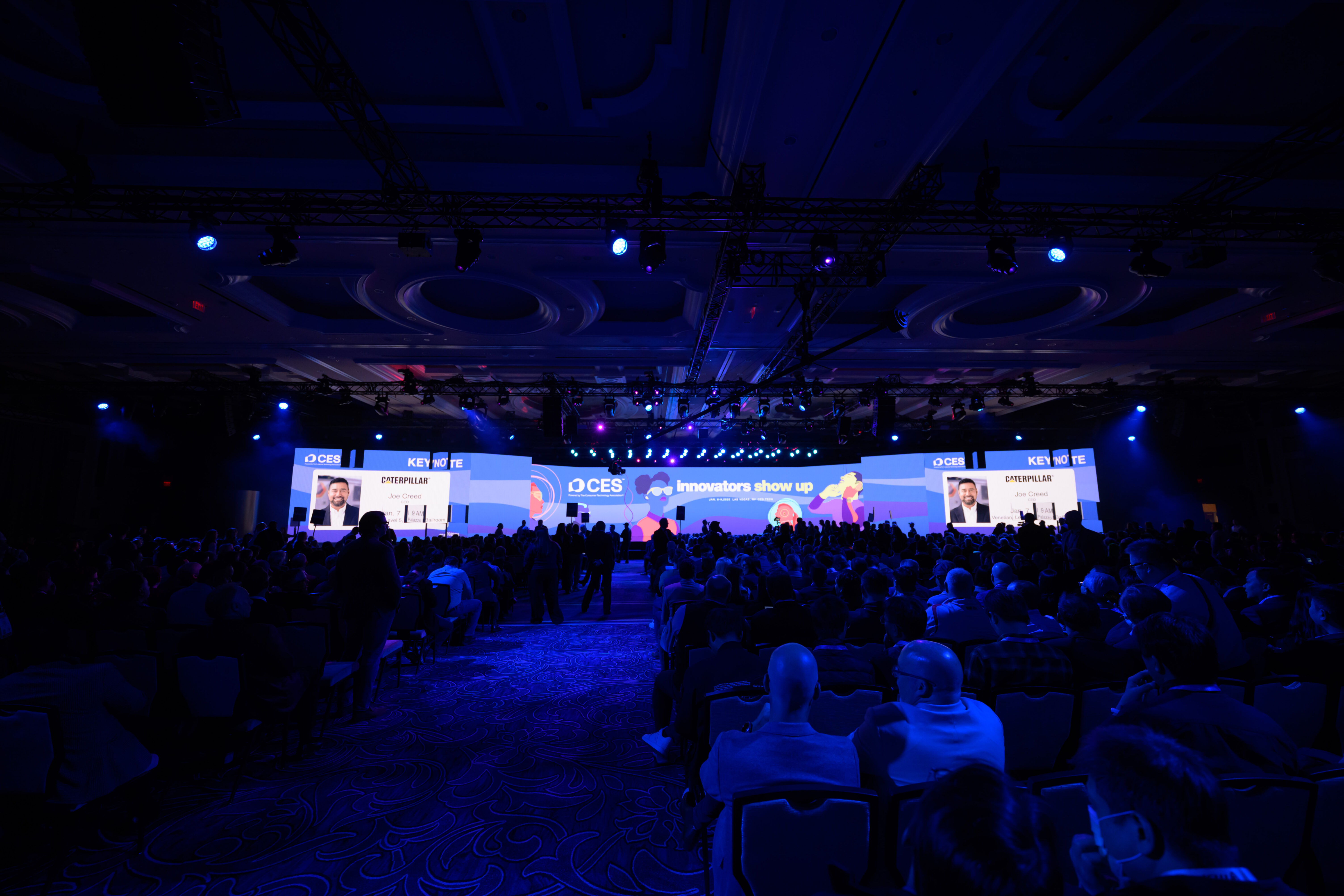 In advance of CES, it was important that we could preview the video on a large screen format. Tool partnered with Pier59 Studios to leverage their state-of-the-art Mega Wall as a large-format validation environment. This allowed the team to preview and refine AI-generated keynote graphics at true presentation scale, assess whether motion and transitions felt appropriate for a live audience, and avoid visual intensity that could cause viewer fatigue or motion sickness. Working at this scale also provided critical insight into the overall impact of content on a wall of this size, enabled accurate color evaluation, and helped surface potential compression artifacts early. By using Pier59’s facility for large-format AI previs, Tool reduced downstream risk, accelerated creative decision-making, and delivered greater confidence in how the content would perform in the live CES environment.