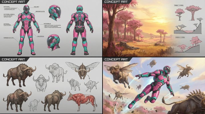 It was designed for an immersive seven-screen environment, each operating at very high resolution and in non-standard aspect ratios. The central screen was closer to a 32:9 format - a canvas that current AI image and video tools are not designed to support, either compositionally or technically.