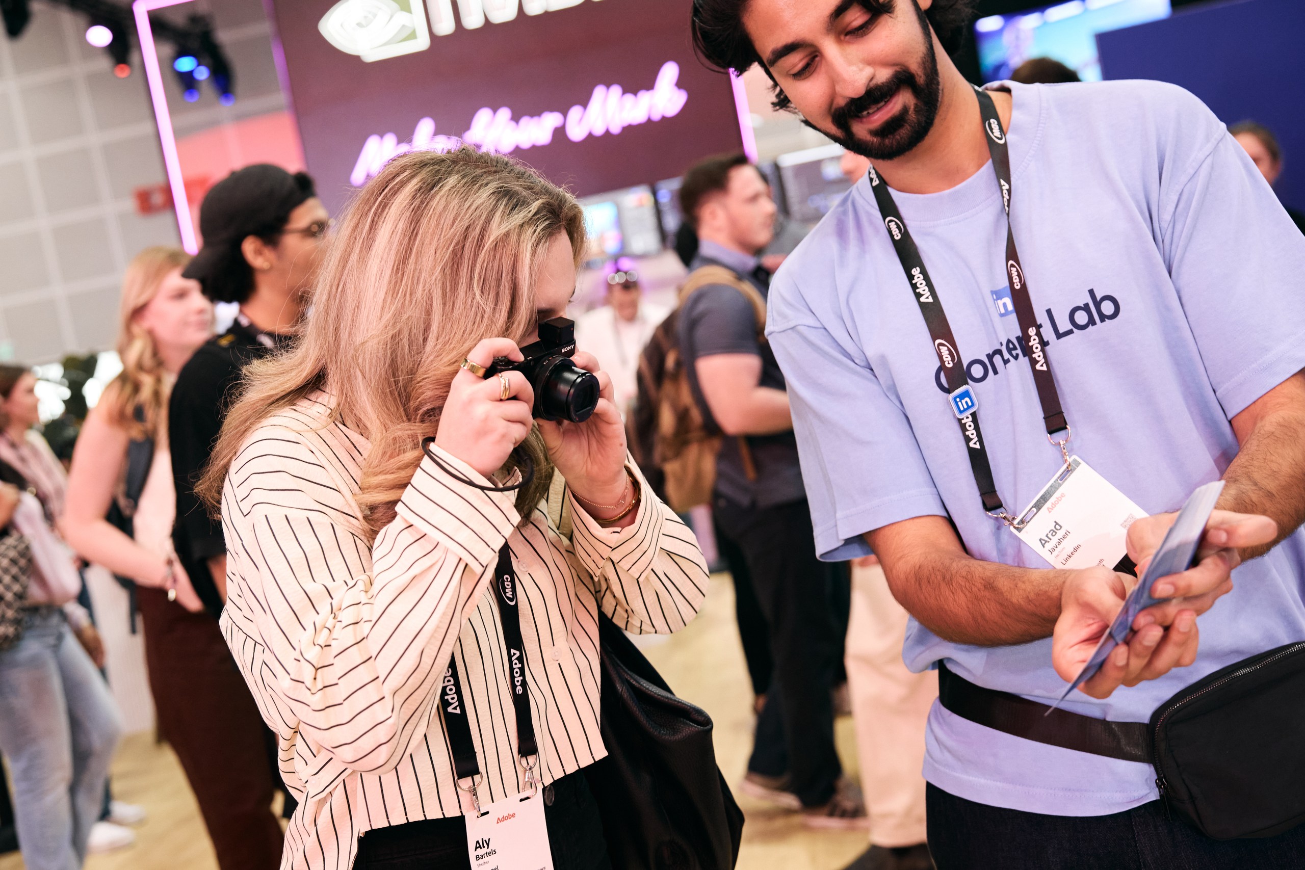 To meet that need, Tool designed the LinkedIn Content Lab — a visually striking, structured, and friendly studio-like environment where attendees could create video content and present their work effectively, explore audience strategy, and build polished posts using Adobe Express templates created specifically for creatives.