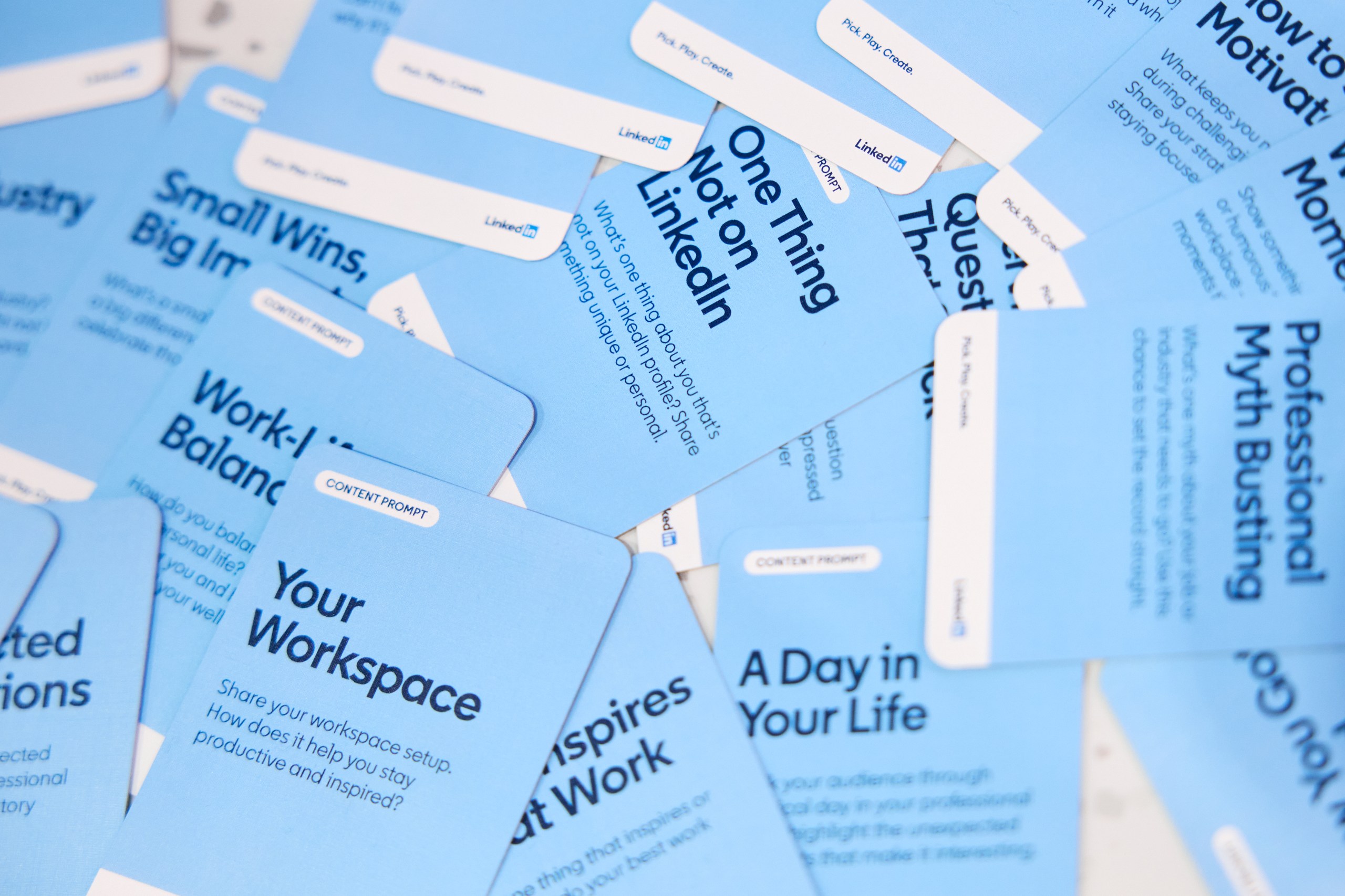 LinkedIn’s solution was to hand out Content Cards, with different prompts, thought-starters, and creative direction for creating Video Content to post on LinkedIn.