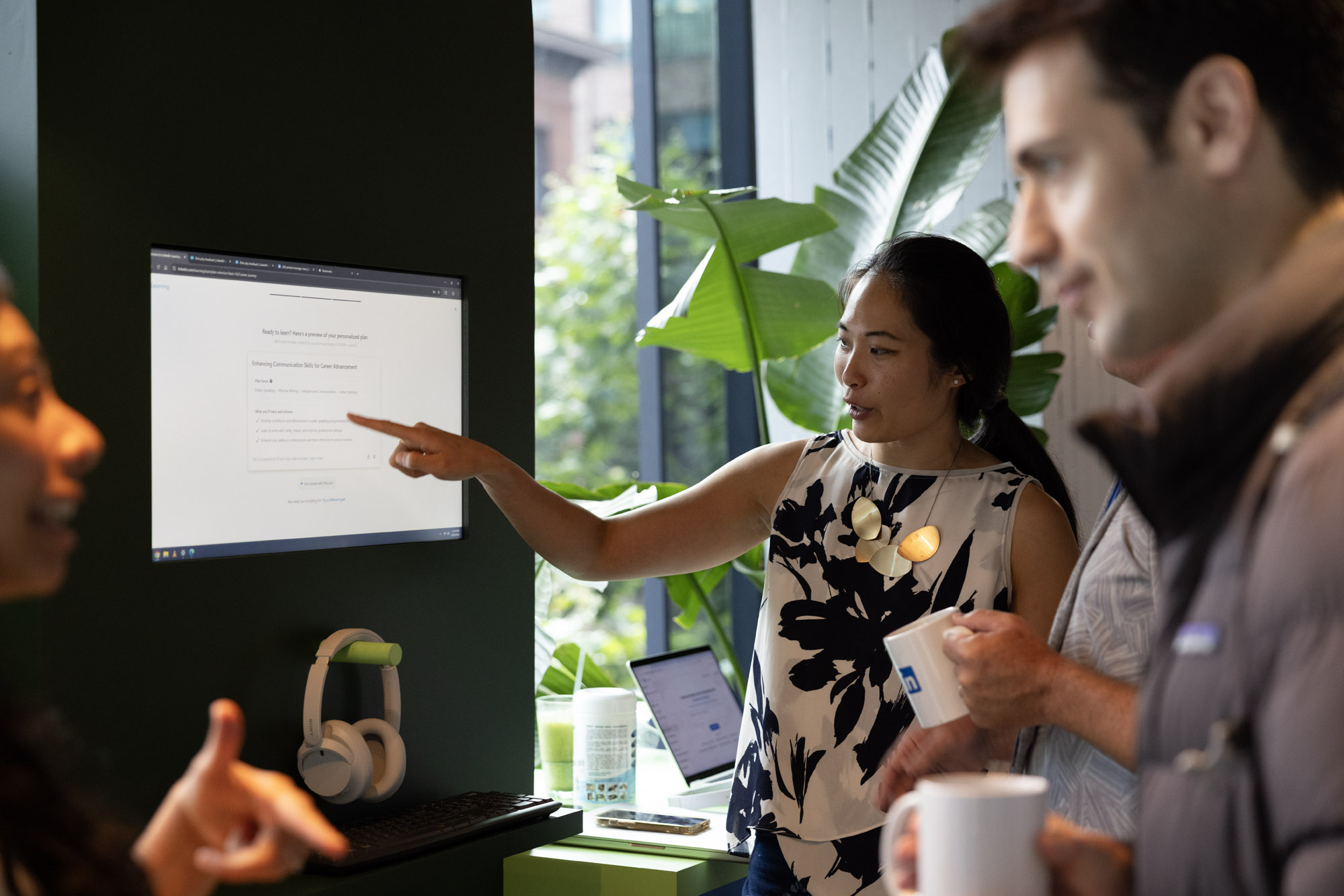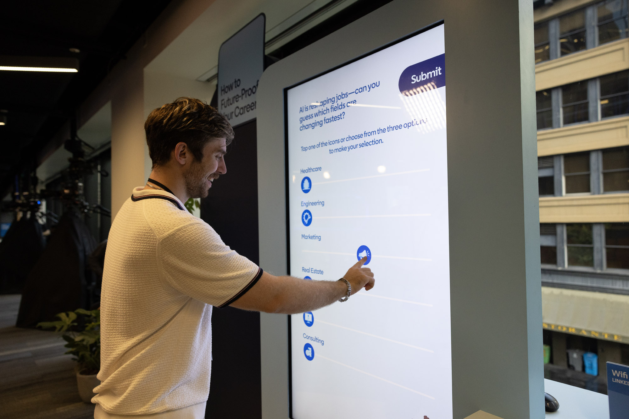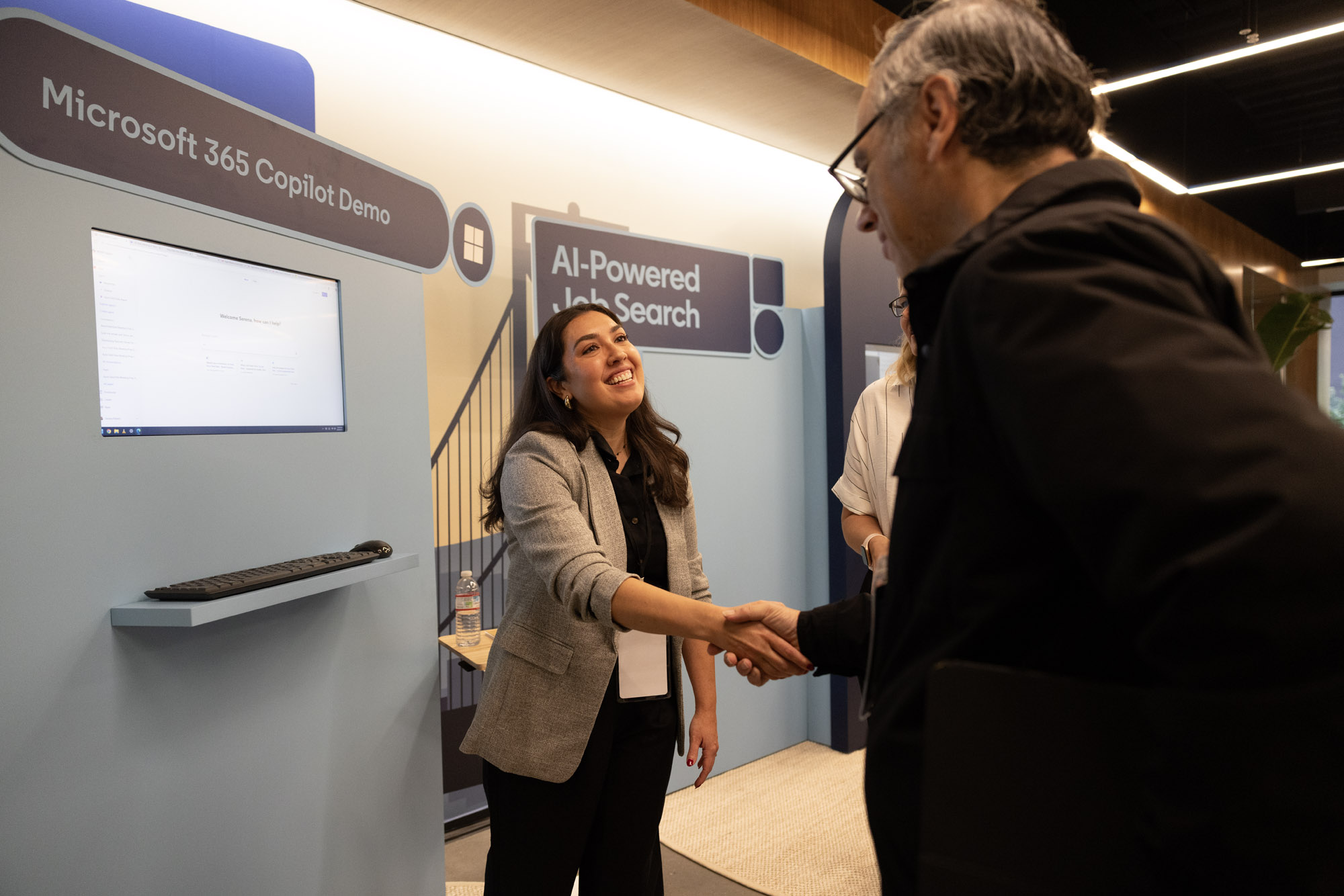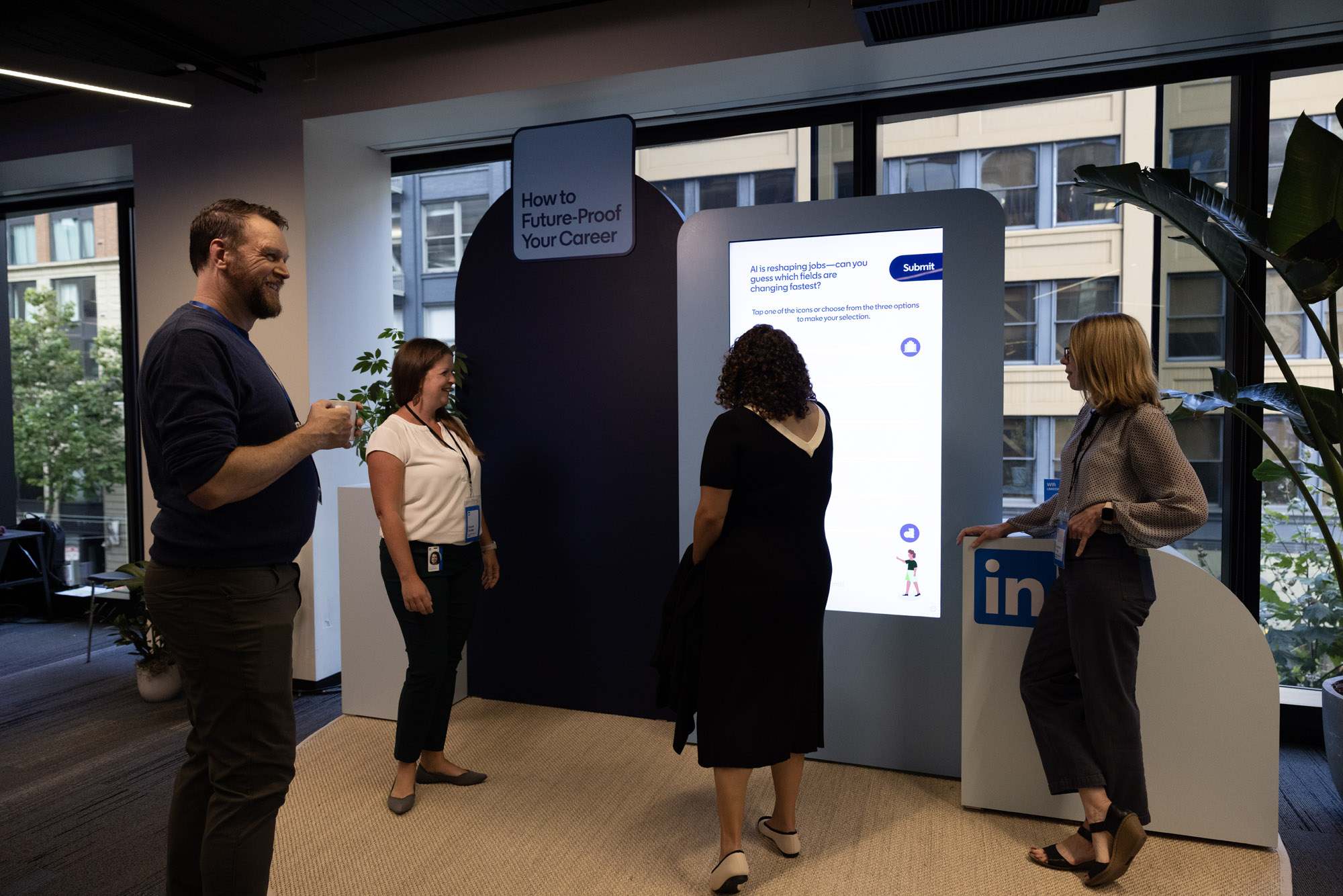 All demos were strategically positioned to display a mix of LinkedIn Premium AI tools and the partner stations, so that guests had an opportunity to engage with either option in any given space. All demos had LinkedIn or partner experts to walk guests and media through the experience, in addition to opening the floor to one-on-one interactions.
